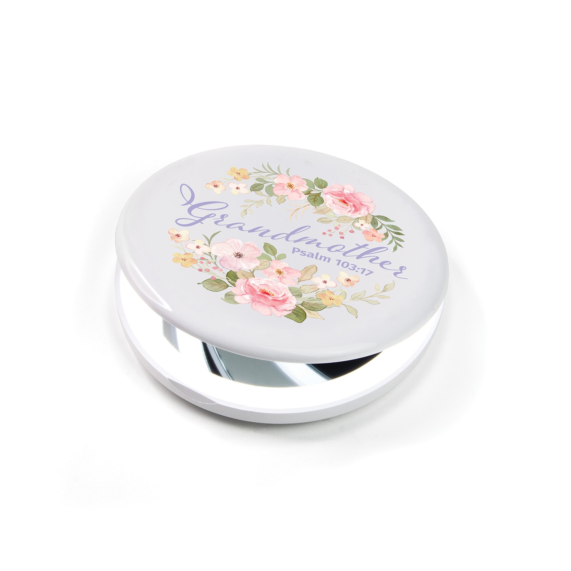 Light Up Make-Up Mirror – Grandmother, Psalm 103:17 These Light Up Make-Up Mirrors include a standard mirror and 2X magnifying mirror as well as a 12 LED light ring. Each mirror is printed with a...