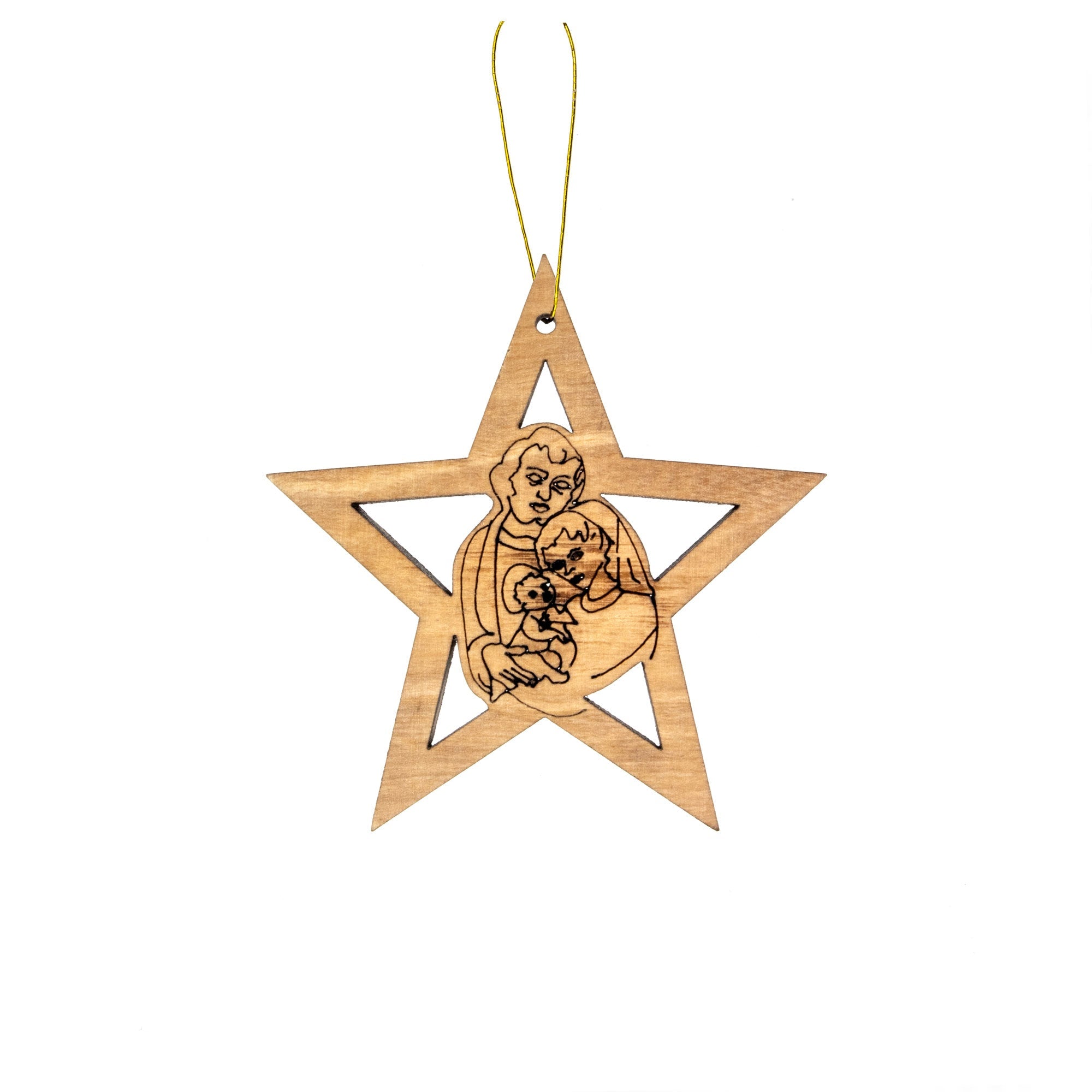 2D Laser Cut Star – Holy Family, Holy Land Olive Wood Christmas Ornament