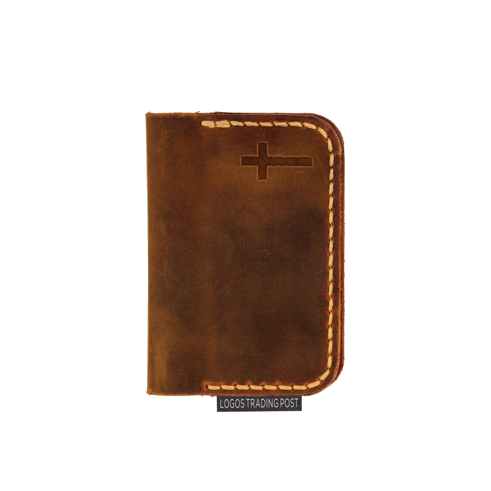 Made from genuine, full-grain cowhide—the highest-quality natural leather in the world—each wallet features a hand-stitched edge and stamped cross design. This handmade front pocket wallet has 2 slots inside.