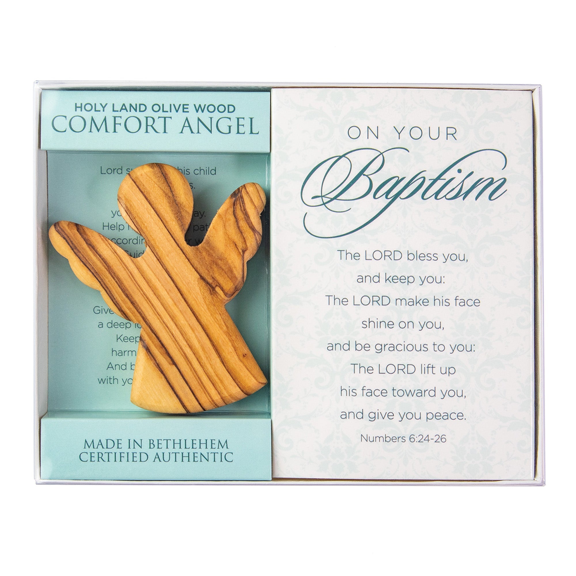 This handheld comfort angel is hand crafted from a solid piece of beautifully grained olive wood in the Holy Land of Bethlehem. Each comfort angel is made with softly rounded edges for maximum comfort in the palm of the hand. The personal size is ideal for travel - keep this comfort angel with you wherever you go.
