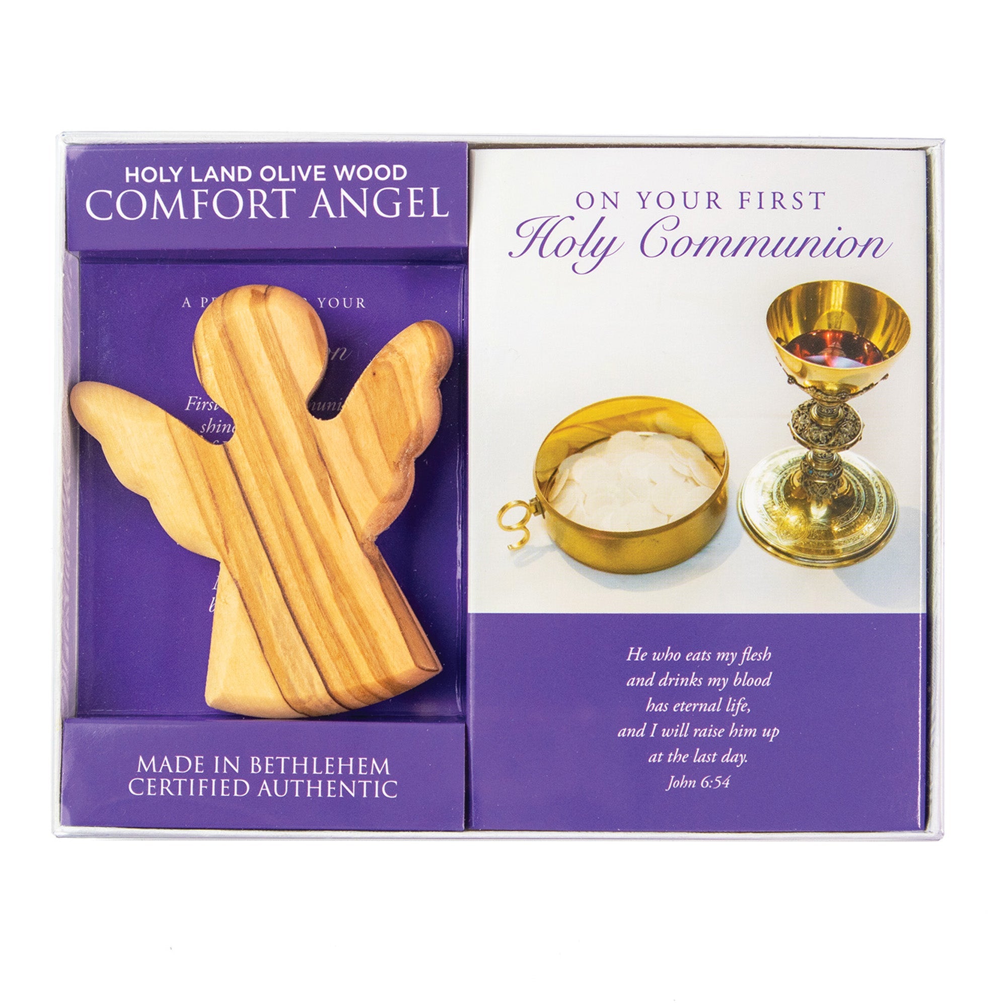Olive Wood First Communion Large Comfort Angel in Box