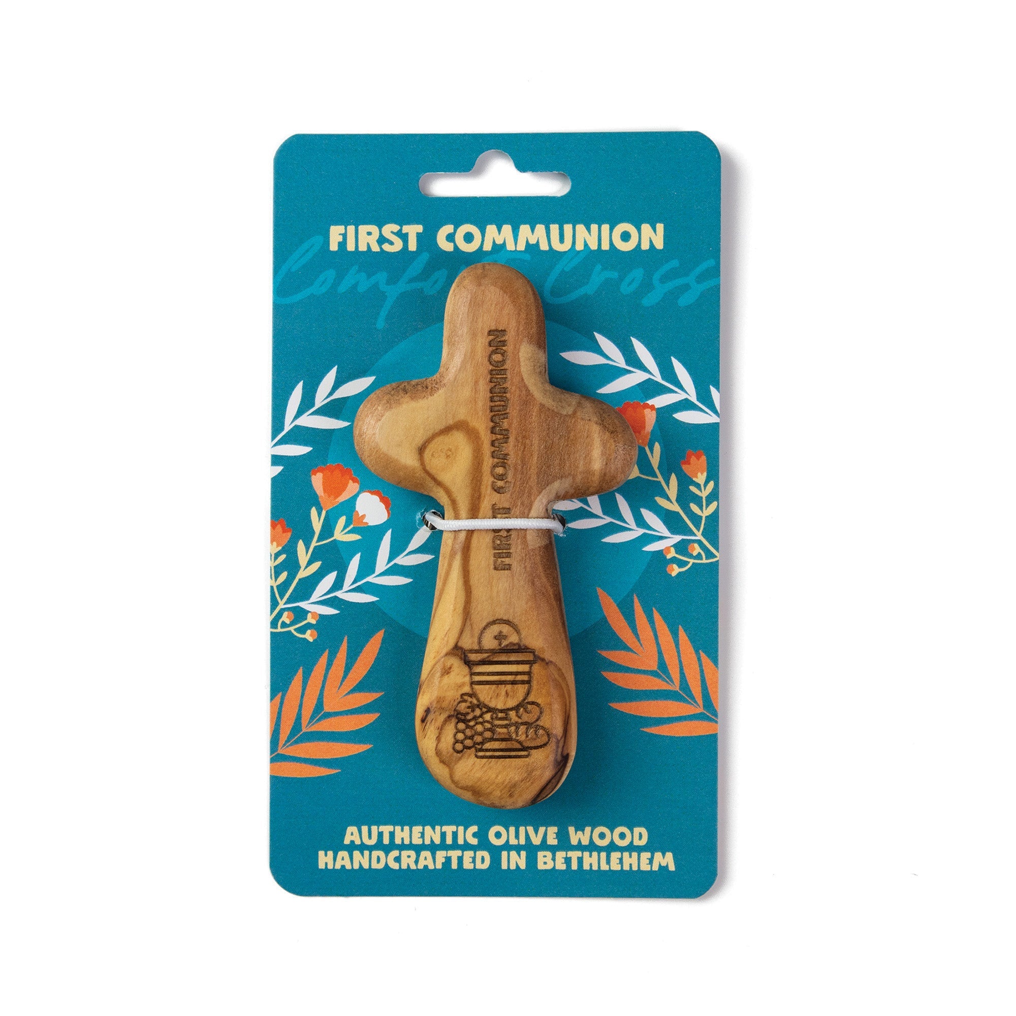 Laser Engraved Olive Wood Comfort Cross, First Communion