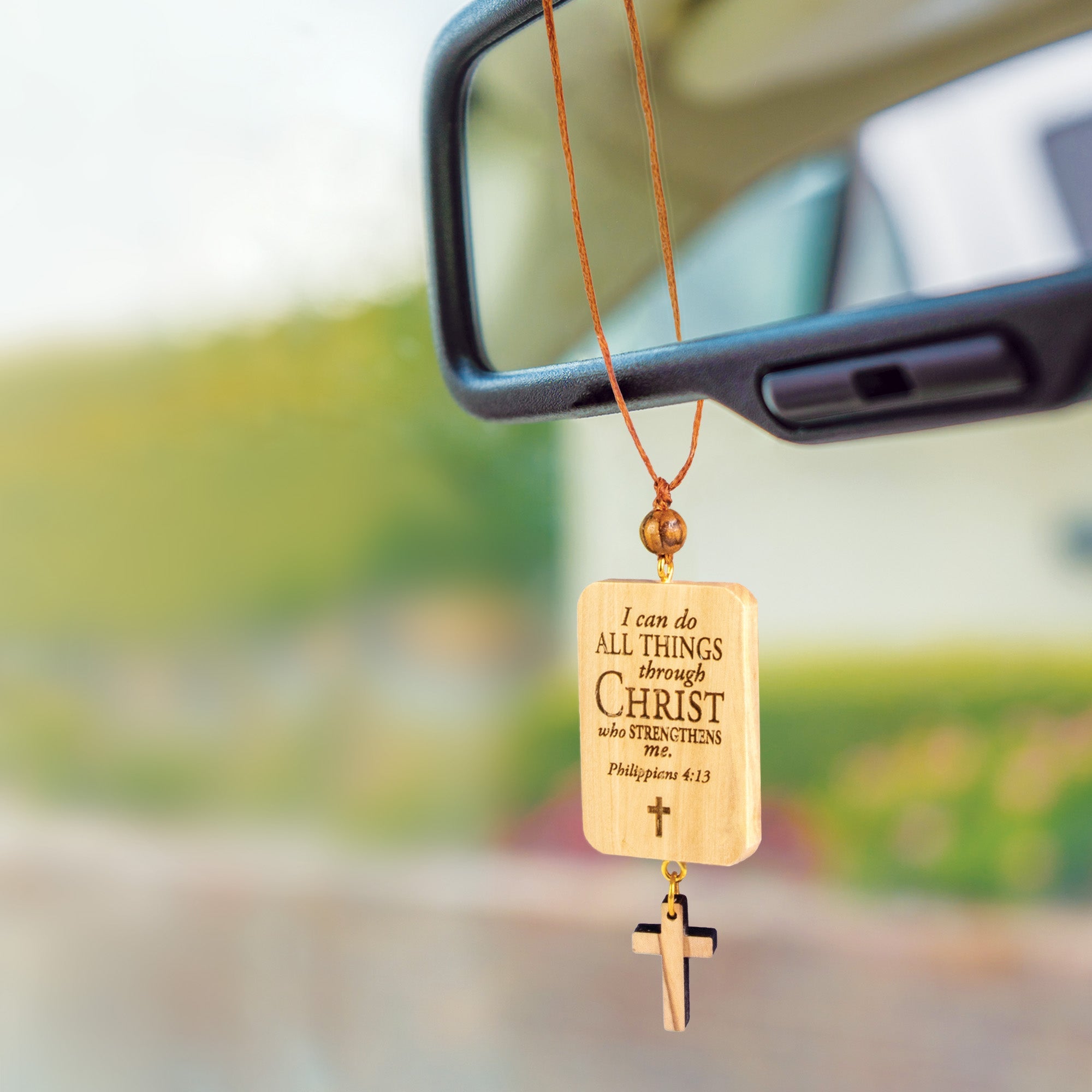 I Can Do Olive Wood Car Charm - Philippians 4:13