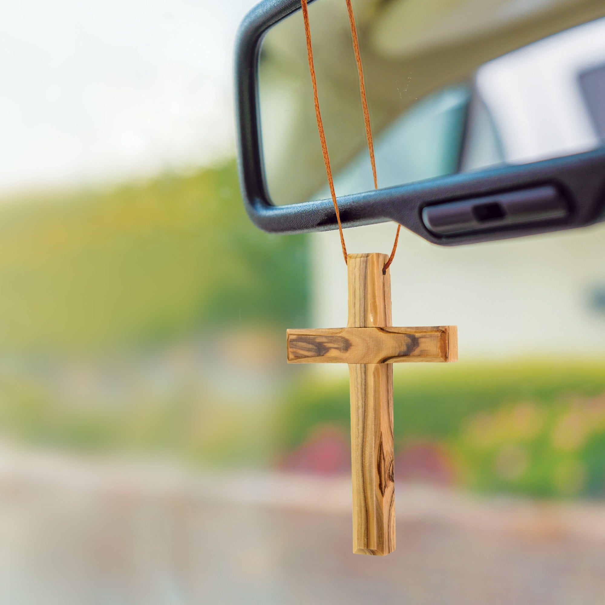 Add meaning and style to your daily commute with these elegant Car Charms. Lightweight and easy to hang, these pendants feature an authentic Olive Wood charm on a cord to display on car mirrors, door knobs, desk lamps, or walls.