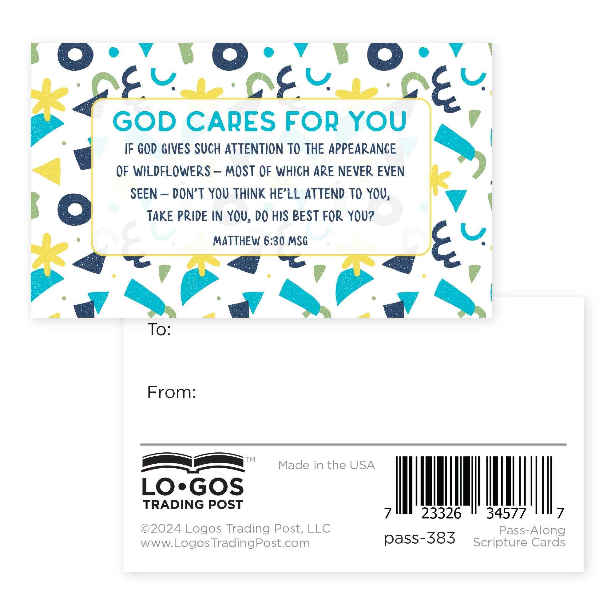 Geometric, God Cares, Matt 6:30, Pass Along Scripture Cards, Pack of 25