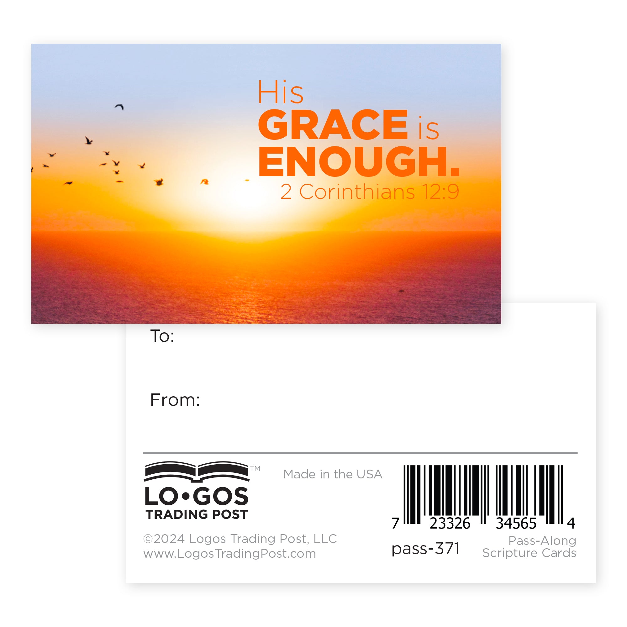 Sunset, His Grace, 2 Cor 12:9, Pass Along Scripture Cards, Pack of 25