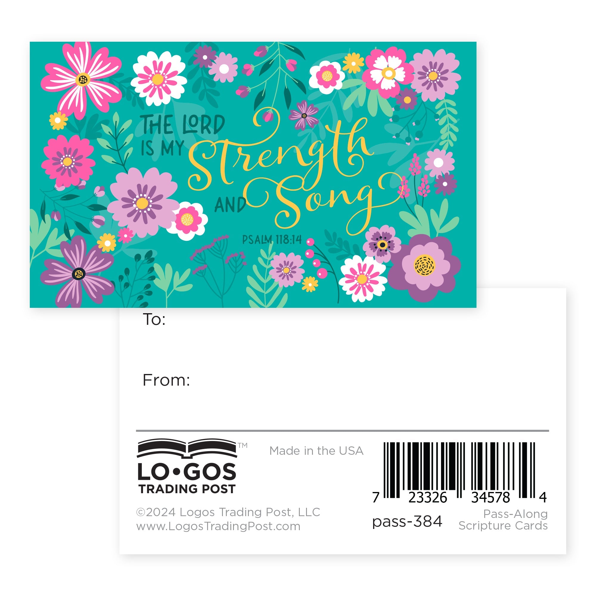 Teal Floral, The Lord is my Strength, Ps 118:14, Pass Along Scripture Cards, Pack of 25