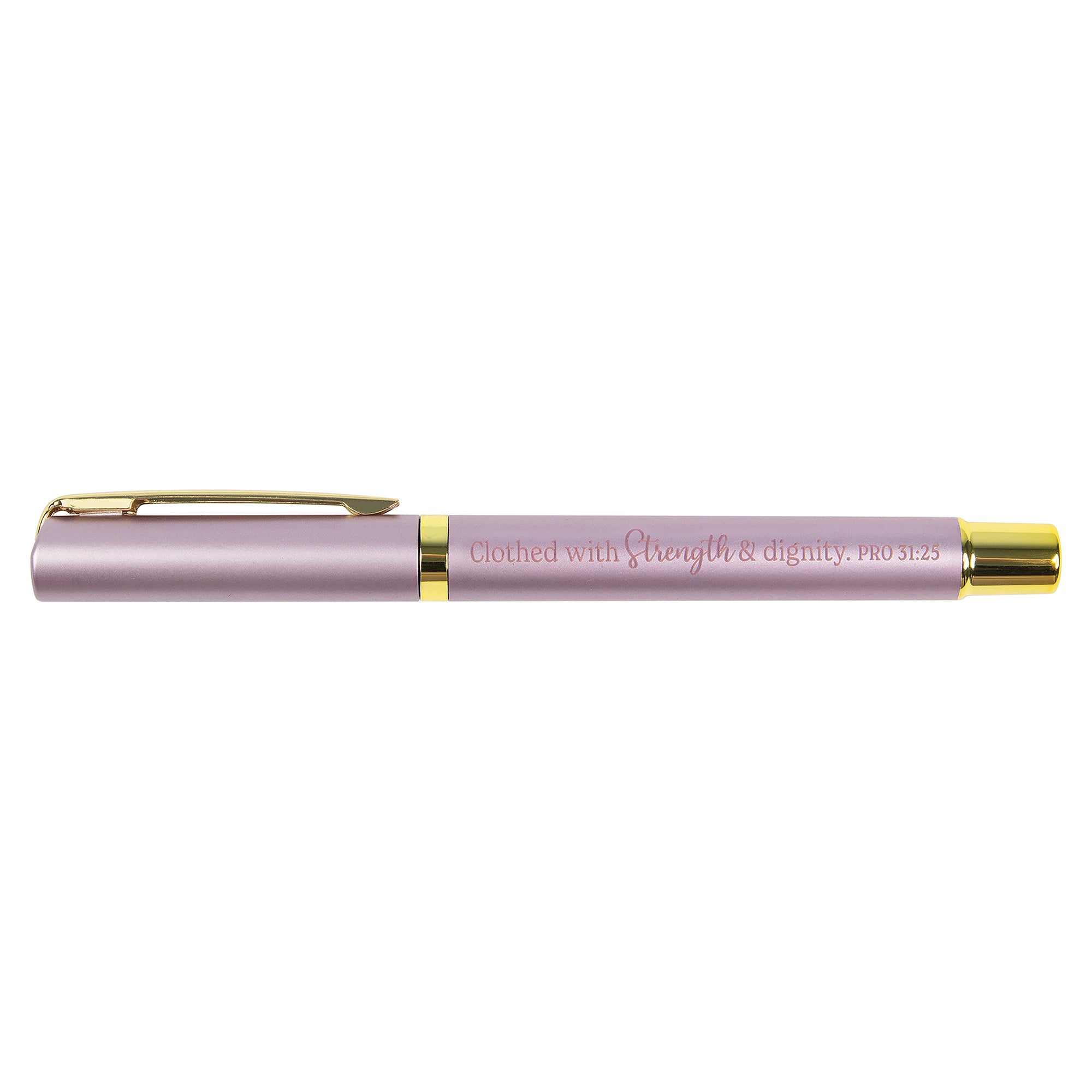 Clothed with Strength and Dignity - Pro 31:25 - Pearl Scripture Pen - Pink