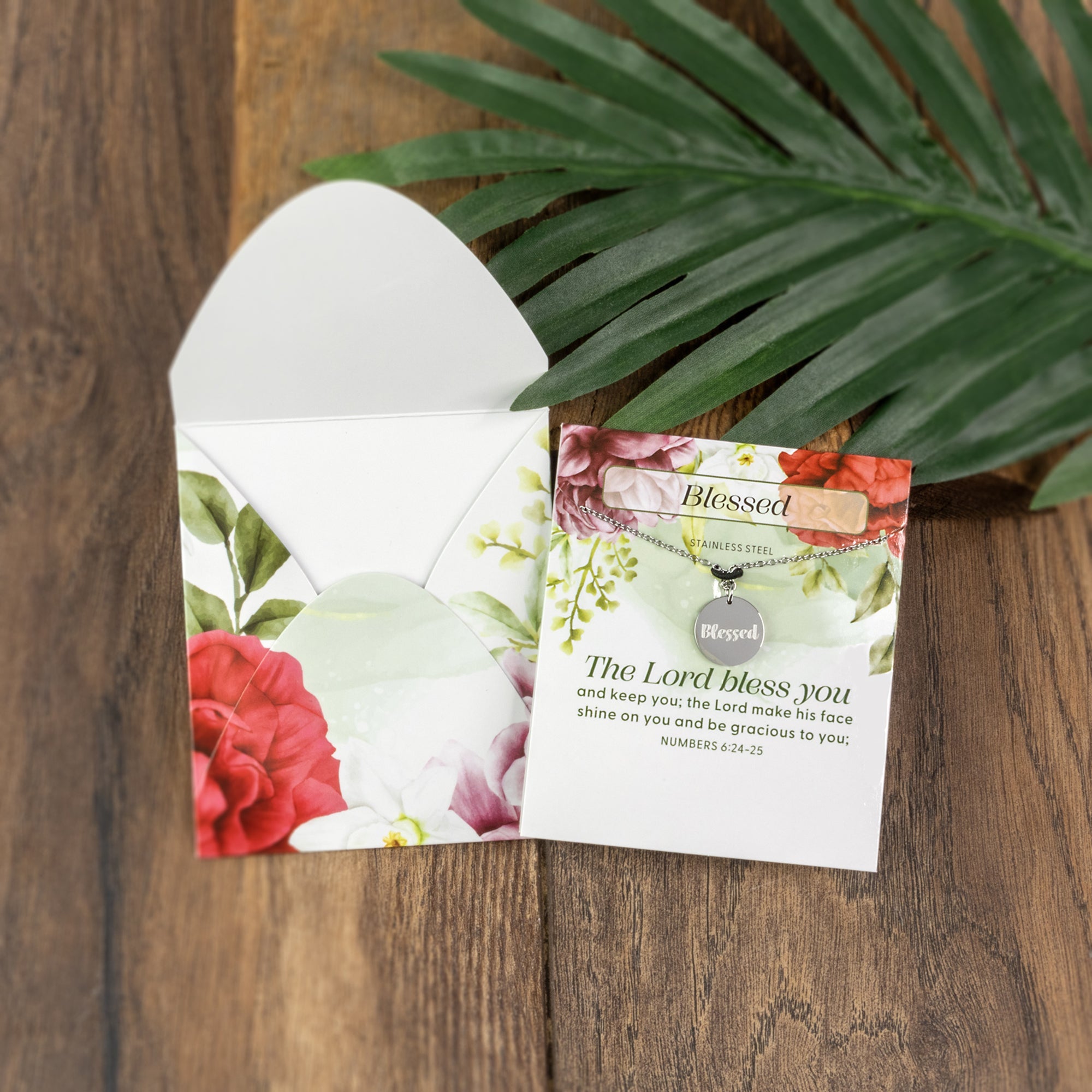 Pendant Front reads "Blessed"; Pendant Back reads "Numbers 6:24"