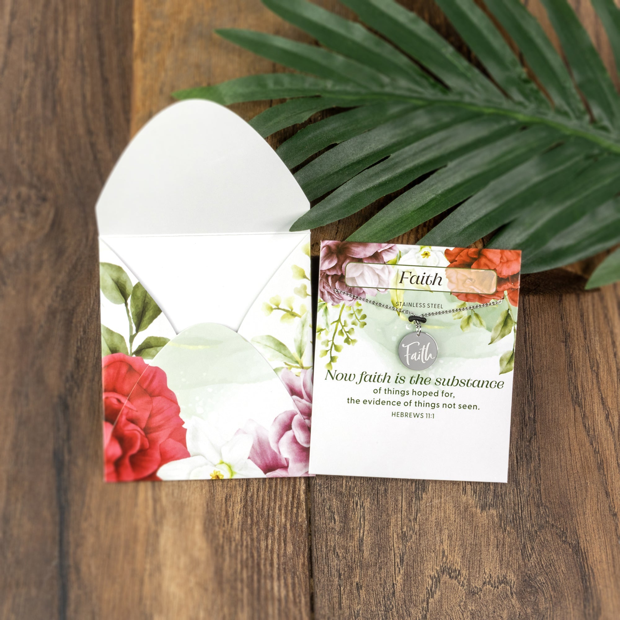 Faith Stainless Steel Medallion Pendant with Card - Hebrews 11:1