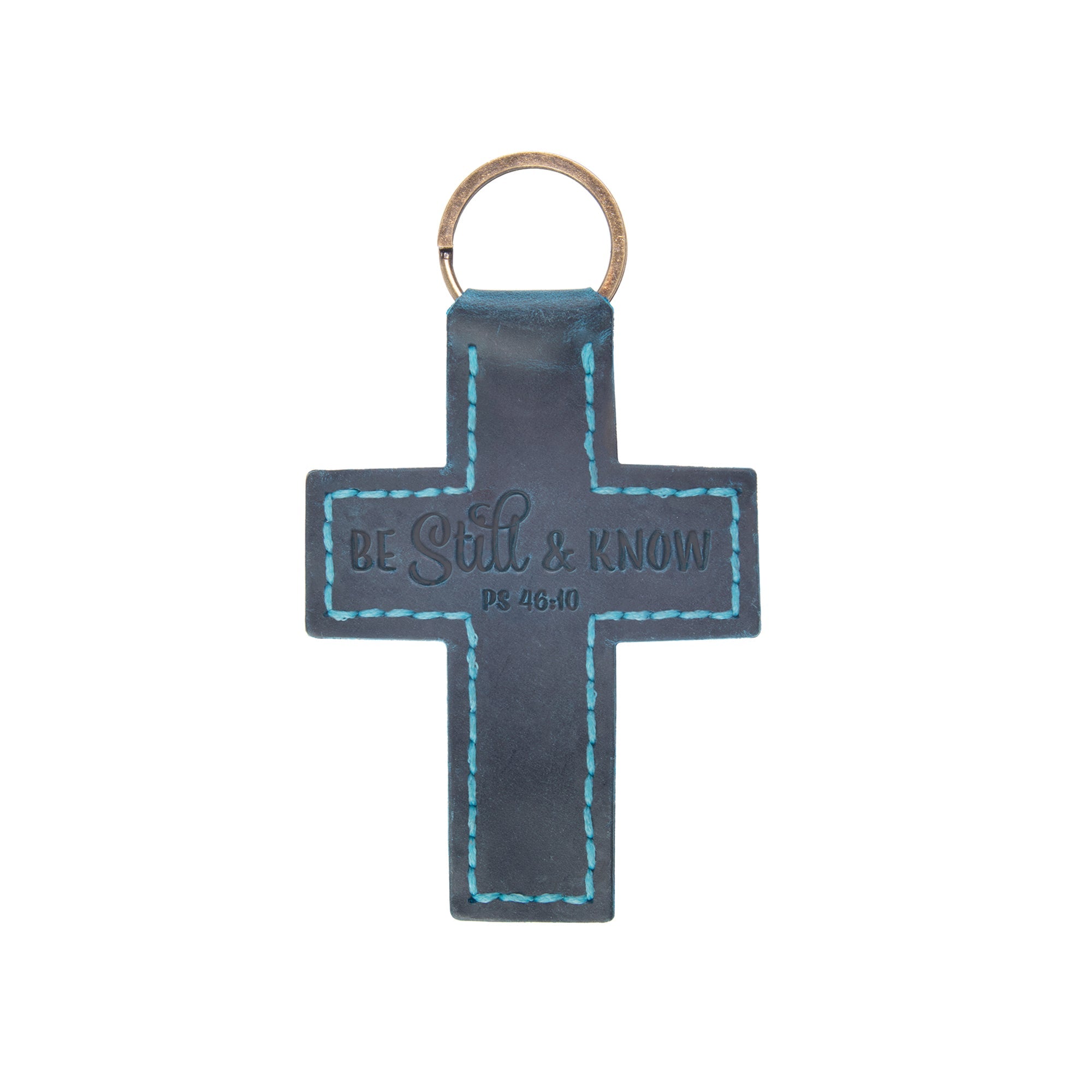 Be Still and Know Leather Cross Keychain – Ps 46:10