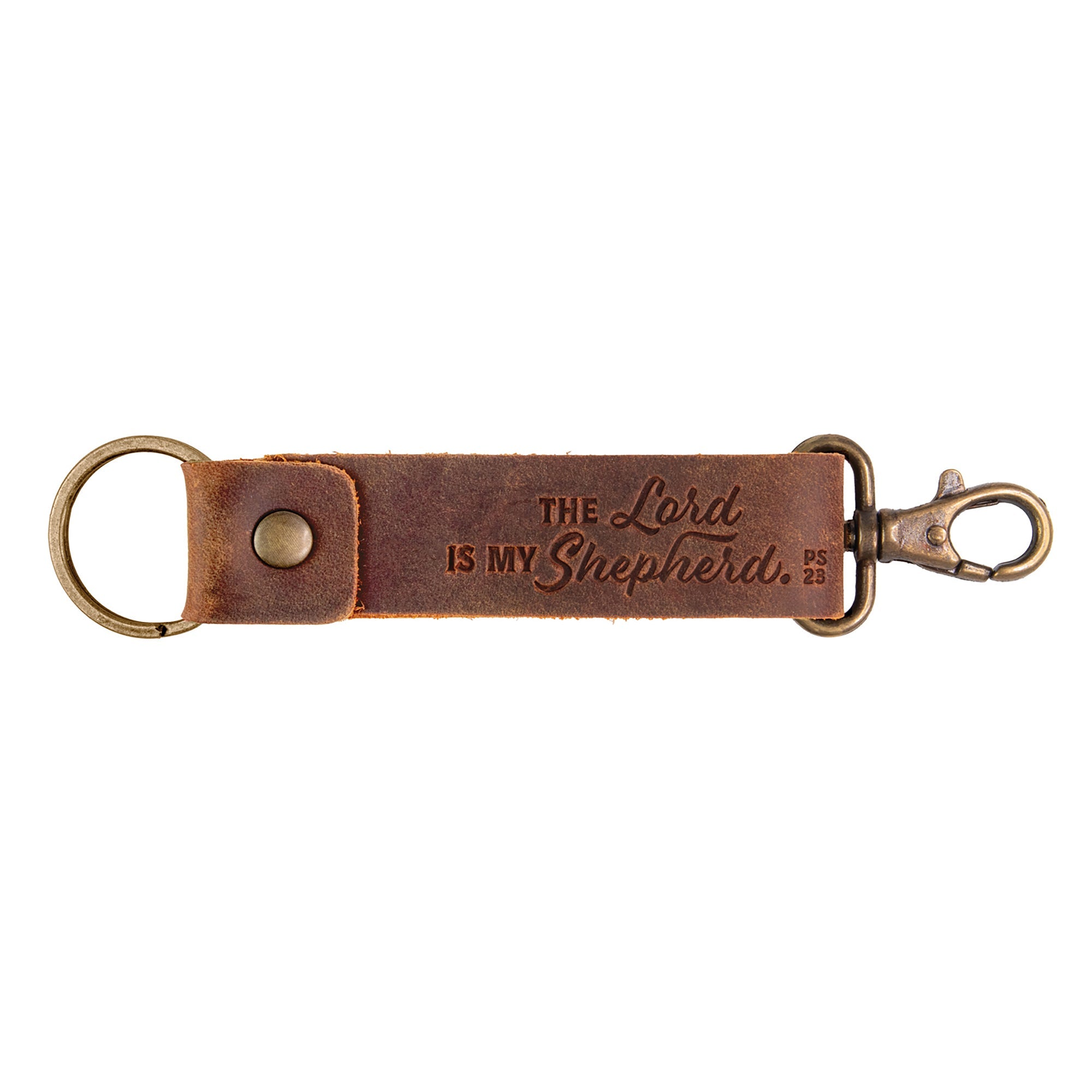 Stamped Genuine Leather - The Lord is my Shepherd. Made from genuine, full-grain cowhide, the highest-quality natural leather in the world, each keychain features a snap closure and a swivel lobster claw clasp with a...