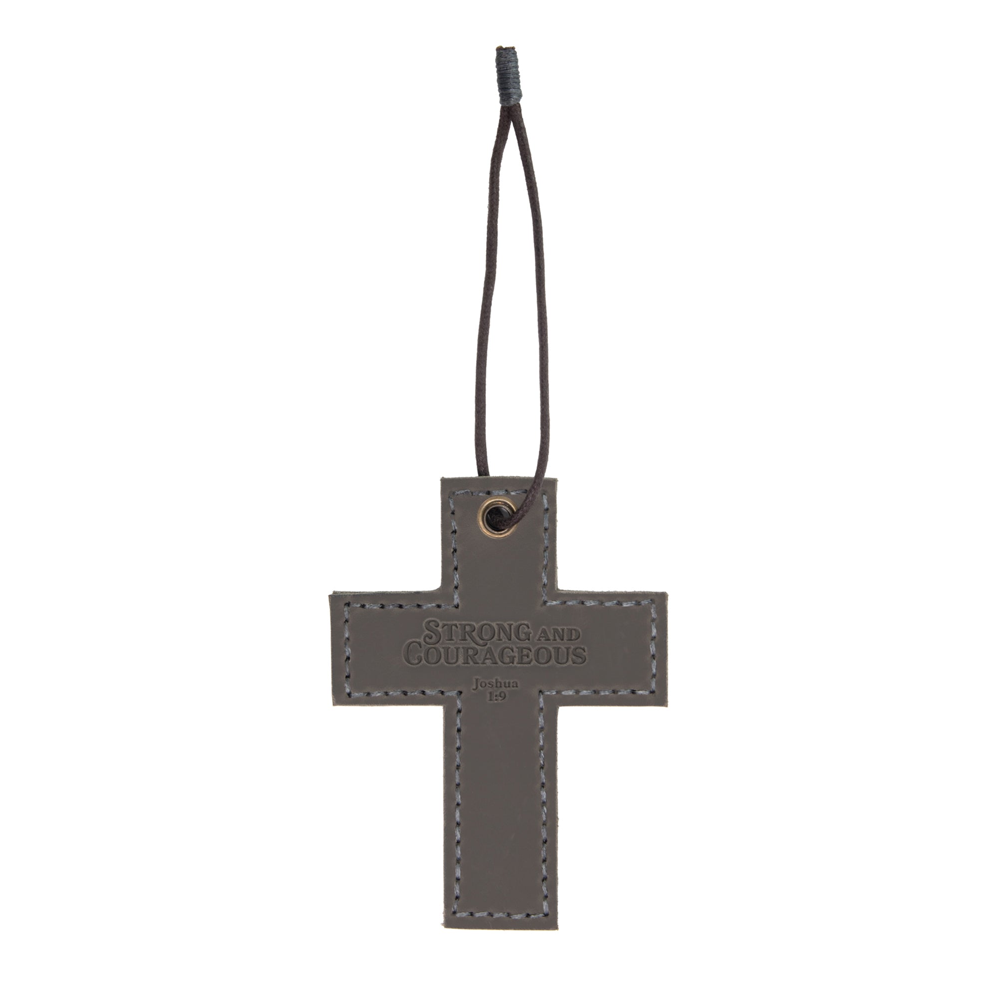 Stamped Genuine Leather - Strong and Courageous Made from genuine, full-grain cowhide, the highest-quality natural leather in the world, each cross features a hand-stitched edge and stamped scripture design. With its braided cord hanger, these...